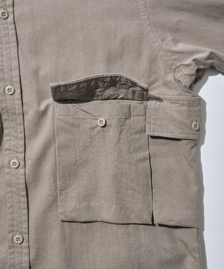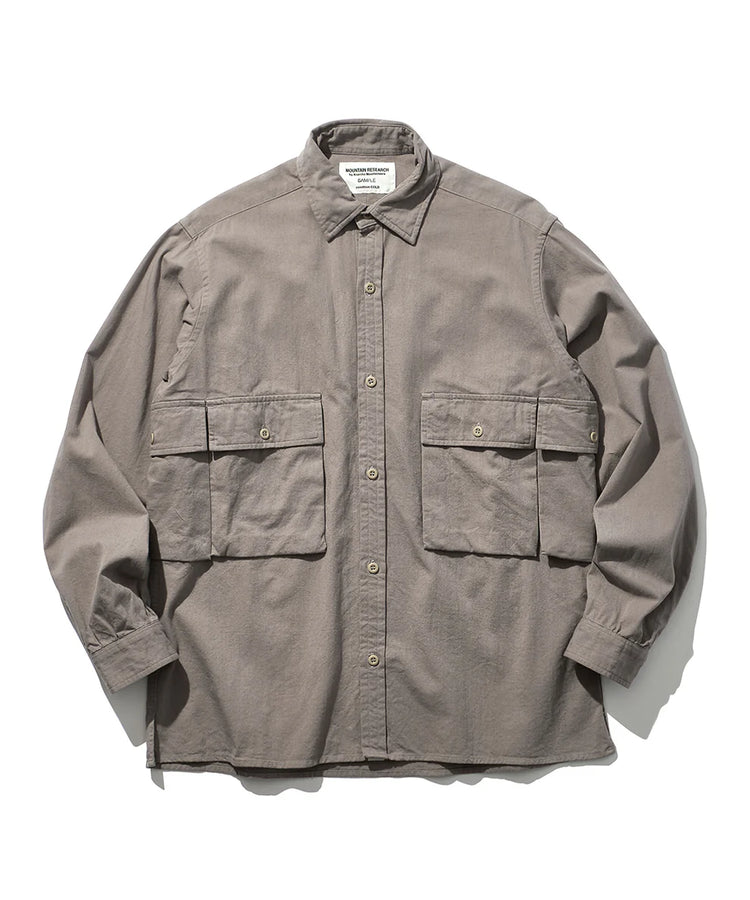 ハンティングシャツをベースにした、マウンテンリサーチらしい“遊び”のある一着。