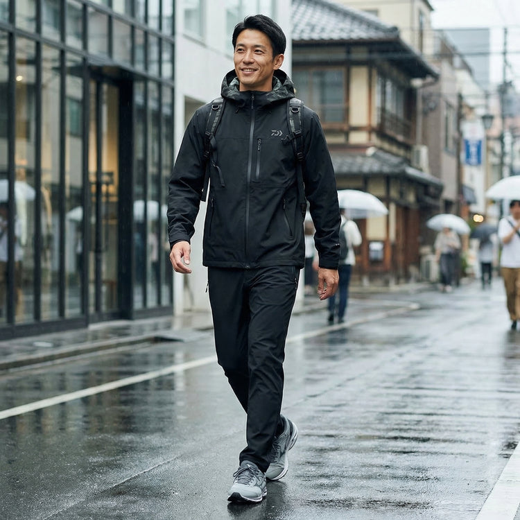 雨の日も、その先へ。DAIWA独自の「RAINMAX」が、防水性と柔らかな着心地を両立。フィッシング由来の緻密なディテールと、肌離れの良いメッシュ裏地が、変わりやすい天候下でもスマートな快適さをもたらす一着です。同素材のパンツRAINMAX 2L SHELL PANTSと、足元にMIZUNOのWAVE RIDER β GTXでアクティブな日常をより快適に。
