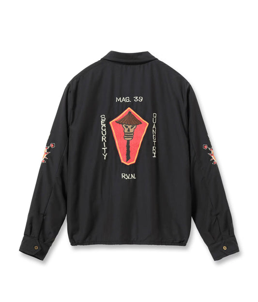 ヴィンテージでも非常に珍しいサテン生地のベトジャン。スカジャンとはまた異なるしなやかなサテン生地で仕立てられており、光沢感のある生地とマットな刺繍糸のコントラストが美しい。1960年代中期にベトナムに駐留していた米兵がアメリカへと持ち帰った一着で、右胸に虎、左胸に「福」の文字、両袖に龍、背中にベトナムの地図を描いたオーソドックスなデザイン。袖口にはヴィンテージ同様、古銭を模したボタンを採用している。ブラックに加え、色鮮やかなブルーと落ち着いたグリーンの配色も展開。